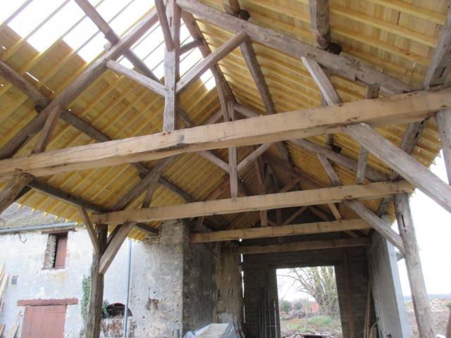 realisation d’une charpente comprenant 10 fermes (bois neuf et vieux)